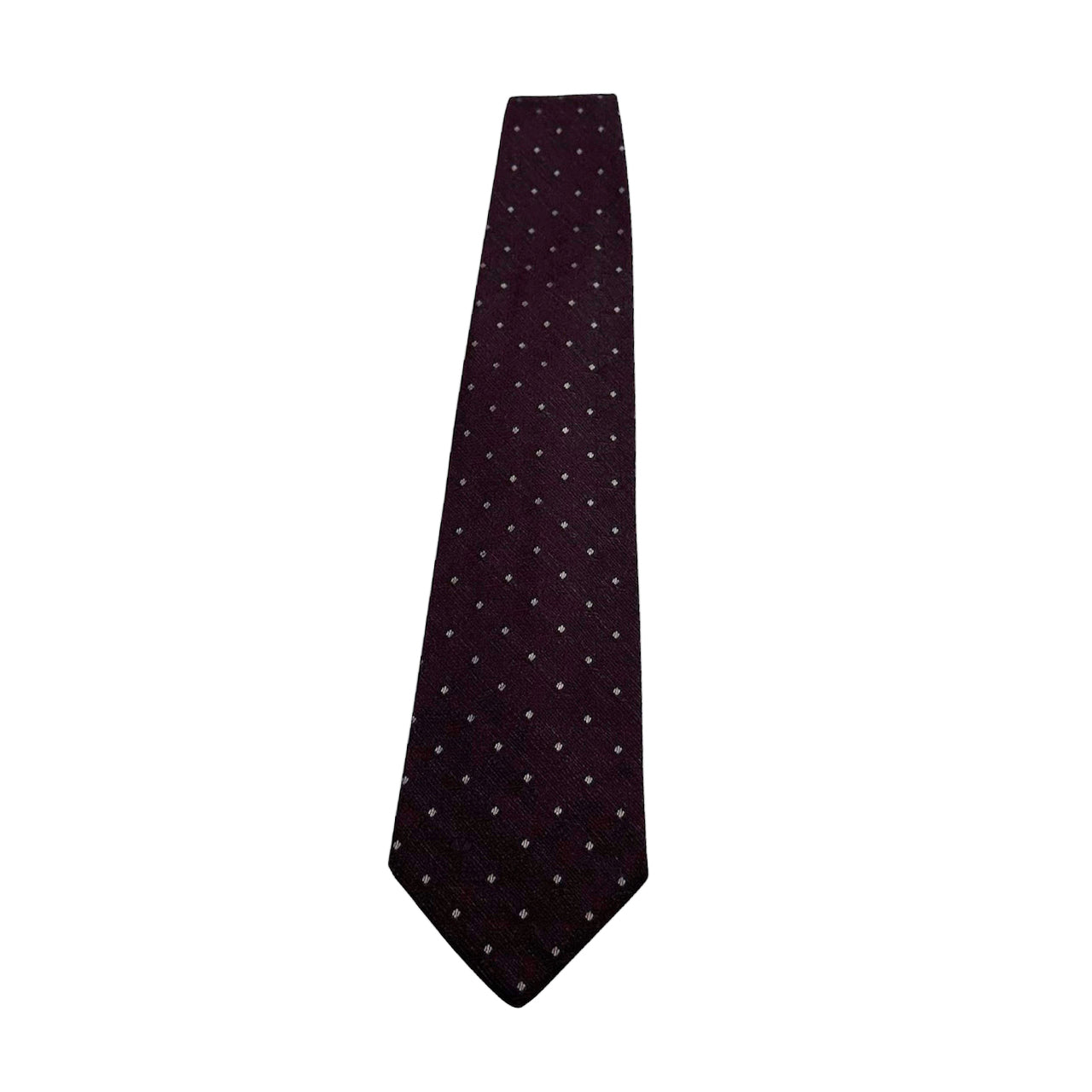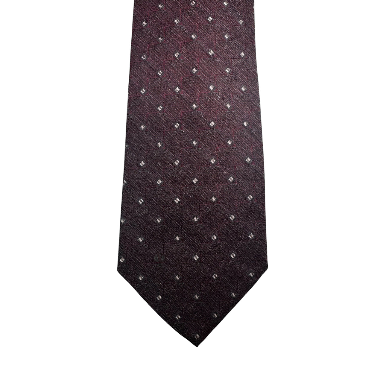 This refined Valentino tie, crafted from 100% silk and made in Italy, features a sophisticated burgundy hue enhanced by a delicate white geometric pattern. The back, with its red lining and tone-on-tone Valentino logo, adds a distinctive detail. Perfect for formal occasions or to add character to your office look, it's a timeless accessory that epitomizes Italian style.